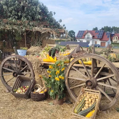 Odkryj witacz dożynkowy "Sierakowo" w gminie Kowalewo Pomorskie, ozdobiony symbolami rolnictwa.